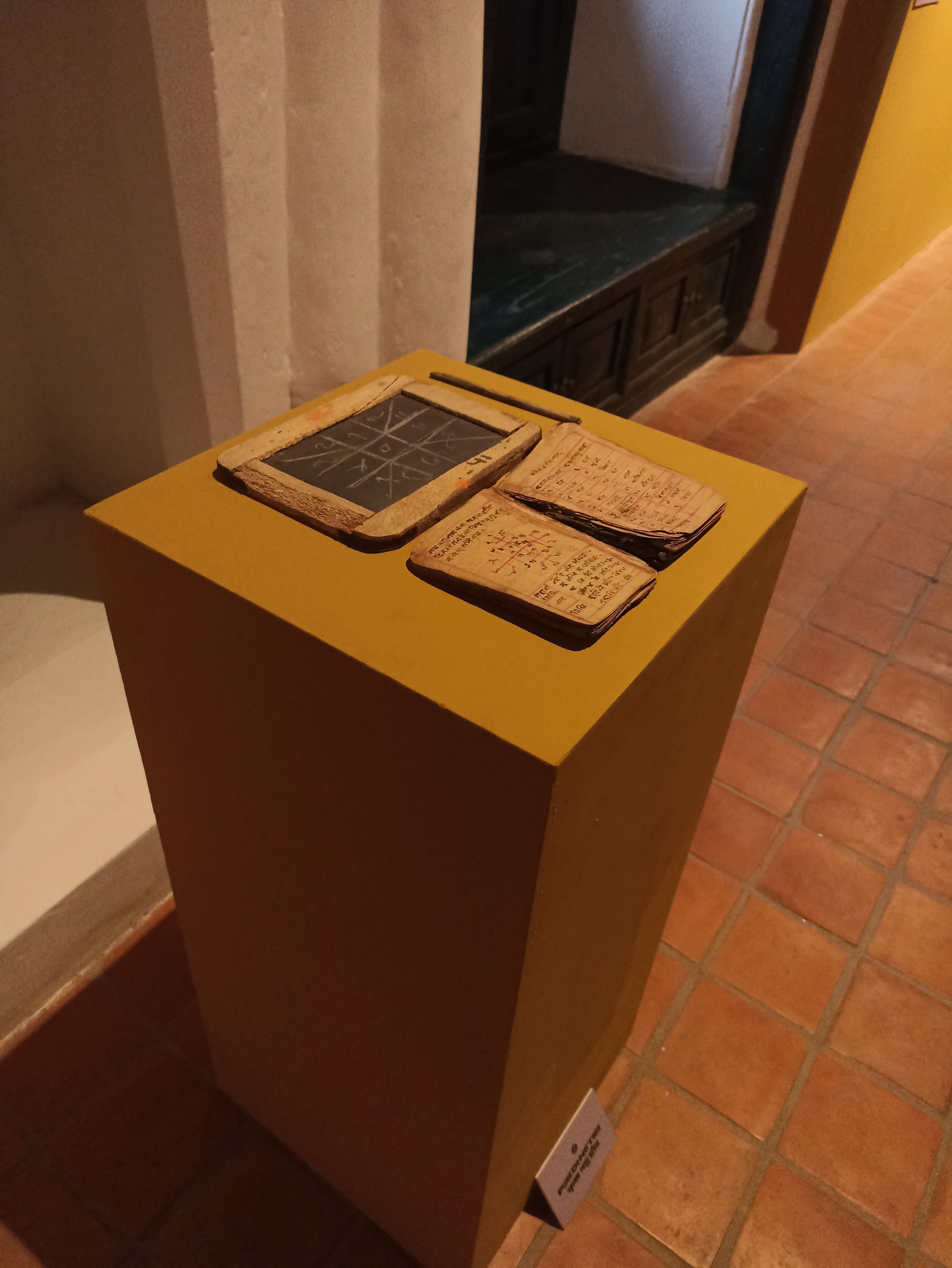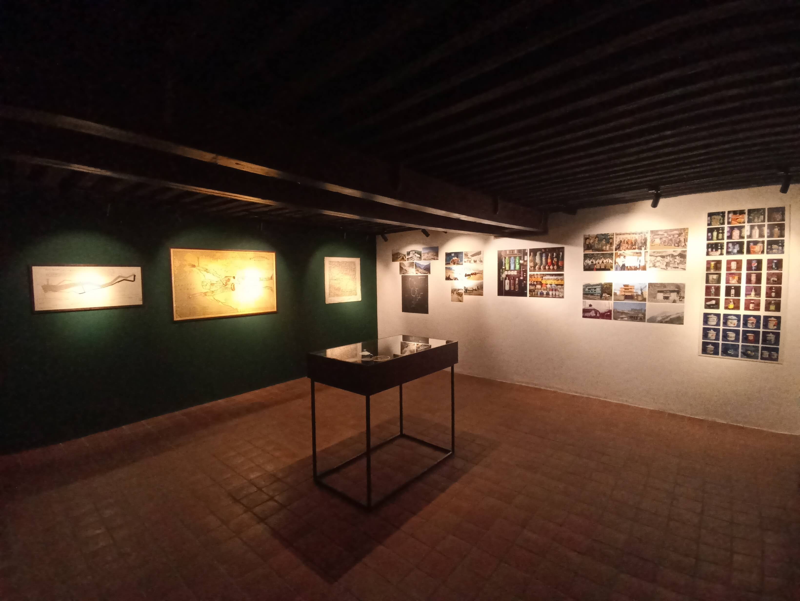 On the floor below in a room that feels like a railway carriage or a caravan (pictured below), is Nyima Dorjee Bhotia’s Where the Fox Settles. The collection of photographs, archival materials, travel documents, a transistor and an abacus, and other artefacts create a real cabinet of collective history.