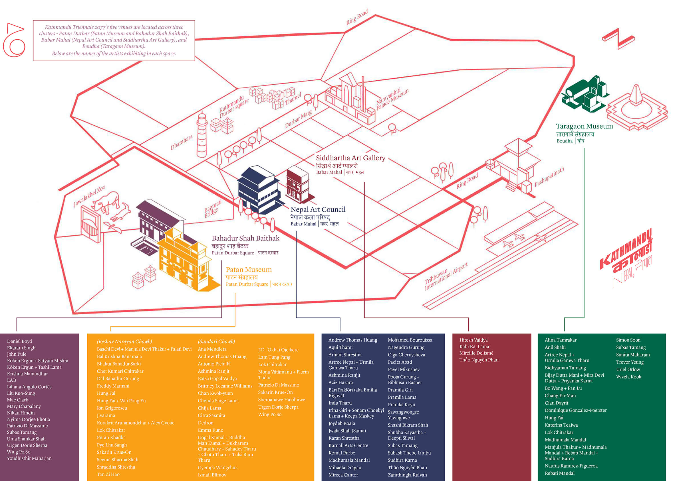 At one of the five Kathmandu Triennale 2077 venues, artists from all over the world have converged with diverse expressions of cartography.