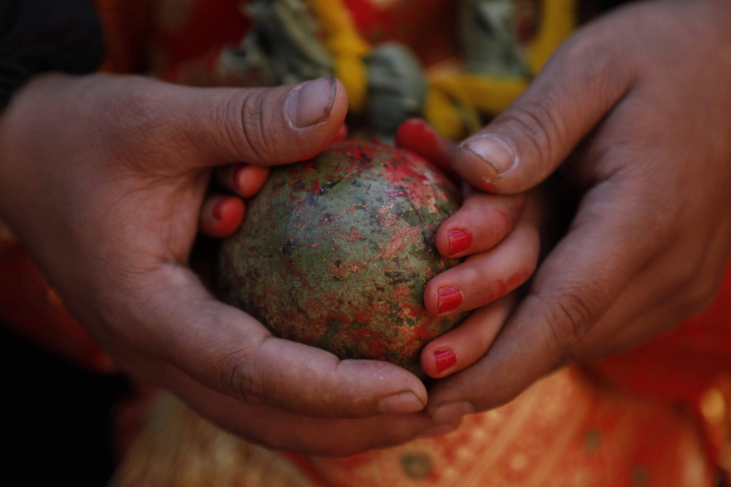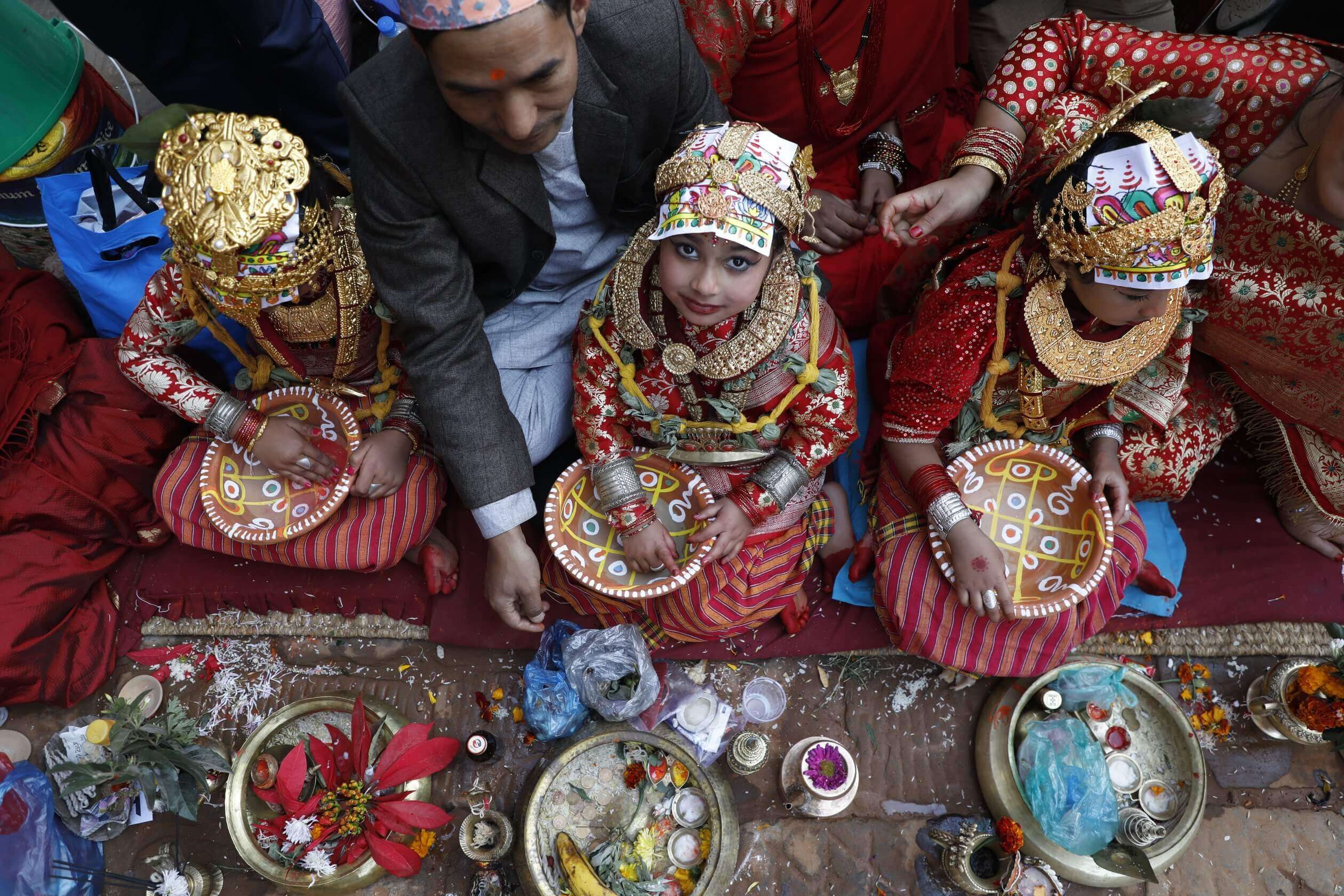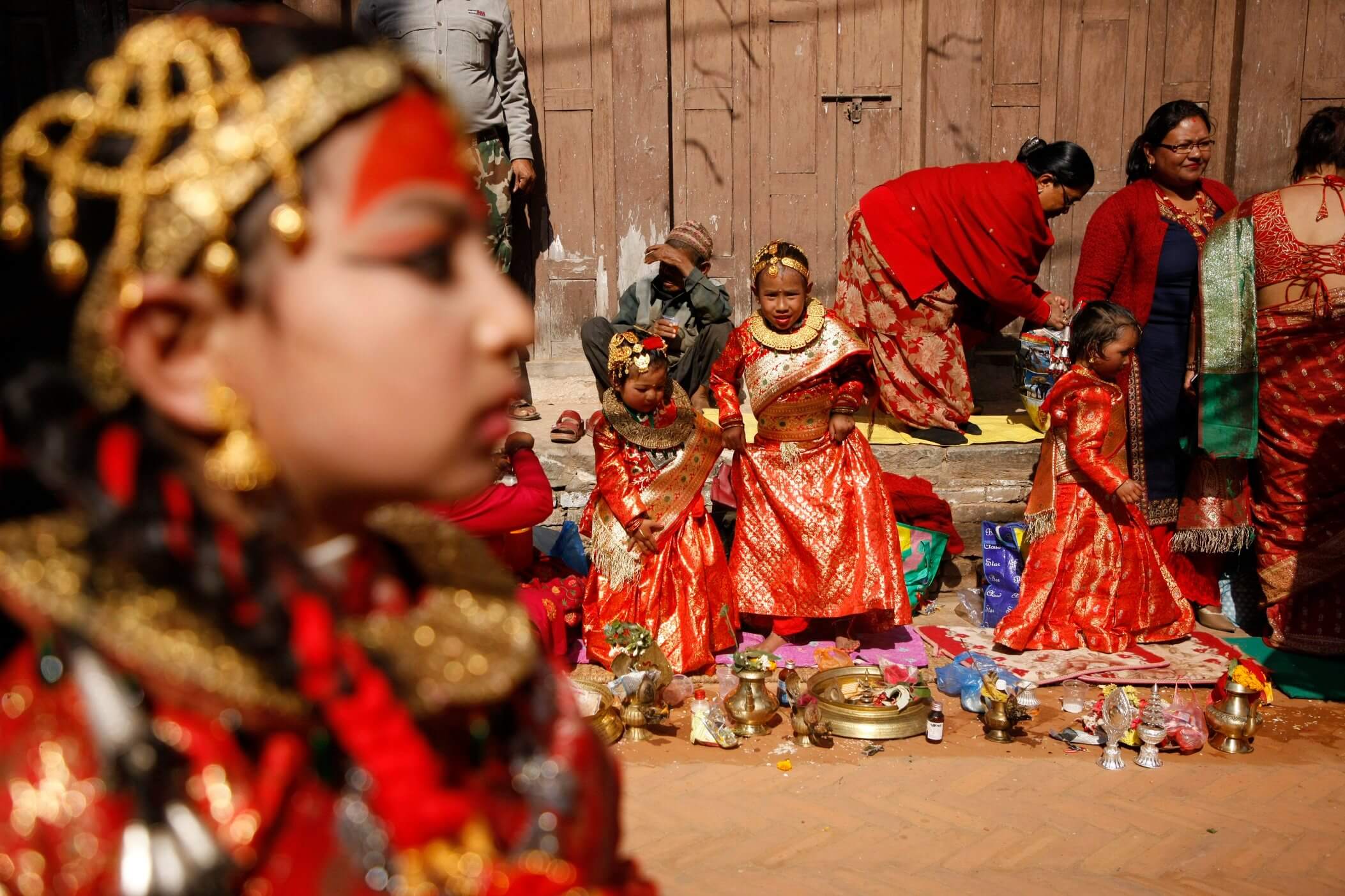 Girls from the Newa community in Nepal get married at least three times in their lifetime. The first ceremony called Bel Bibaha (‘Ihi’) is where pre-adolescent girls are married symbolically to a bael fruit (wood apple). The wild fruit is considered a symbol of the Lord Vishnu.