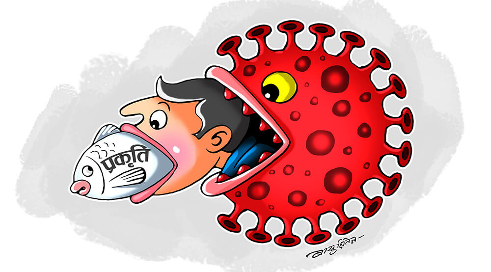 The cycle of environment, man, and the virus. Cartoonist: BASU KSHITIZ/ANNAPURNA POST