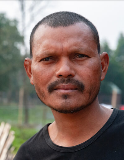 Asian Pied-Hornbills, spotted doves and kingfishers flit from one branch to another of tall sal trees surrounding the tiny village. A group of men loiters around the thatched mud hut of Rishiram Bote (right).