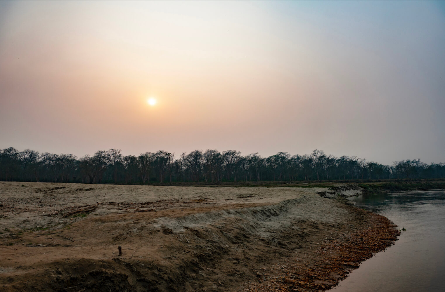 Dusk settles stealthily on the banks of the meandering East Rapti which marks the boundary between the Chitwan National Park and the tourist village of Sauraha, semi-deserted these days because of the pandemic.