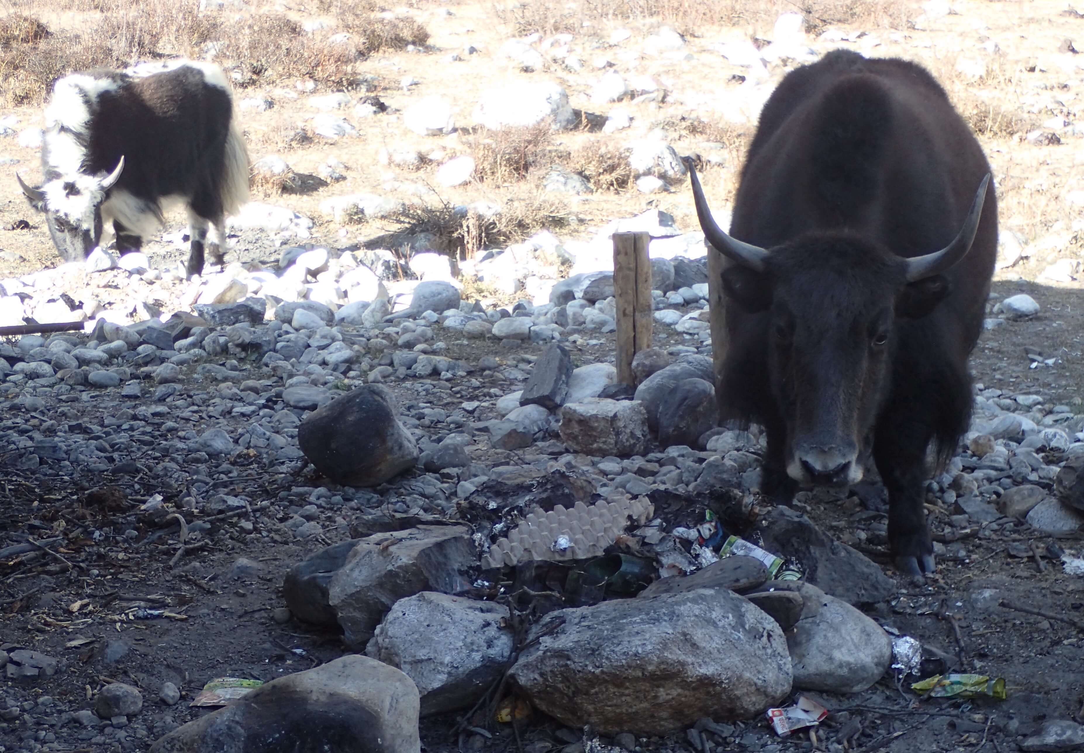 Glacier-fed streams and rangelands especially at the entrance to Kyangjin are littered with plastic wrappers and bottles, and these can be found all the way up to Langshisa and Yala Glaciers.