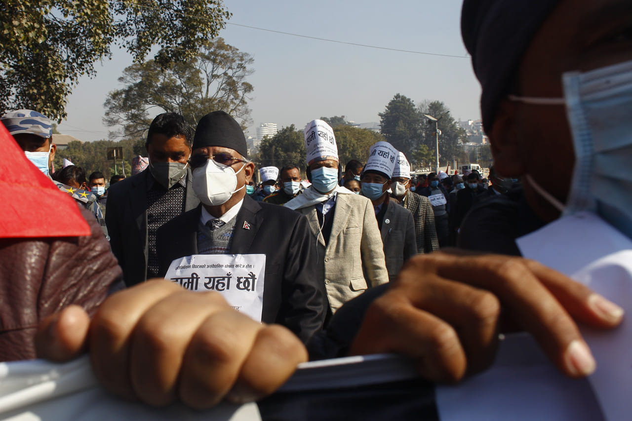 On Friday, the Pushpa Kamal Dahal-led faction of the Nepal Communist Party that is trying to oust Prime Minister K P Oli after a protracted power struggle organised a rally attended by thousands of supporters at the Mandala intersection and the Election Commission.