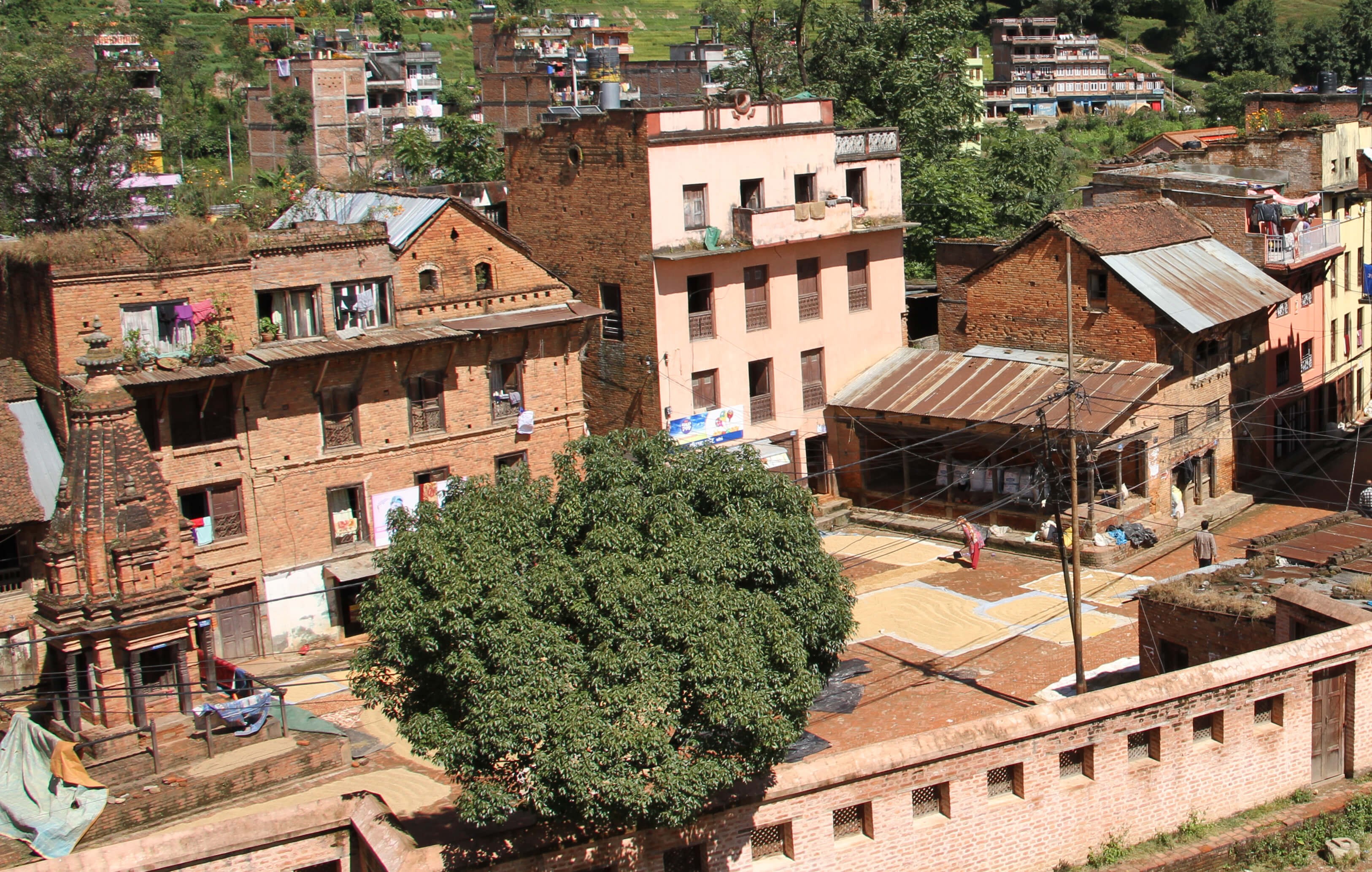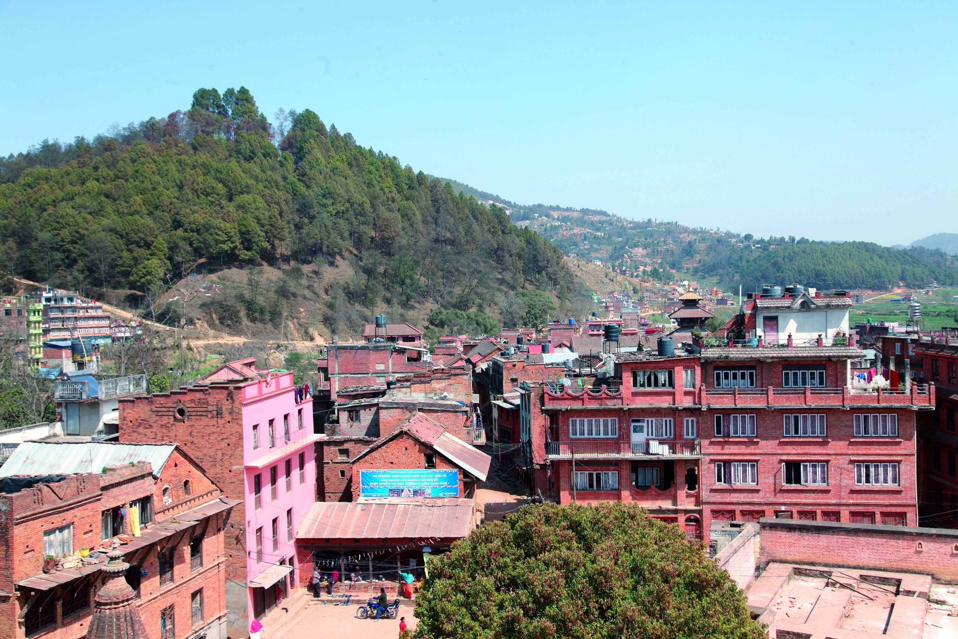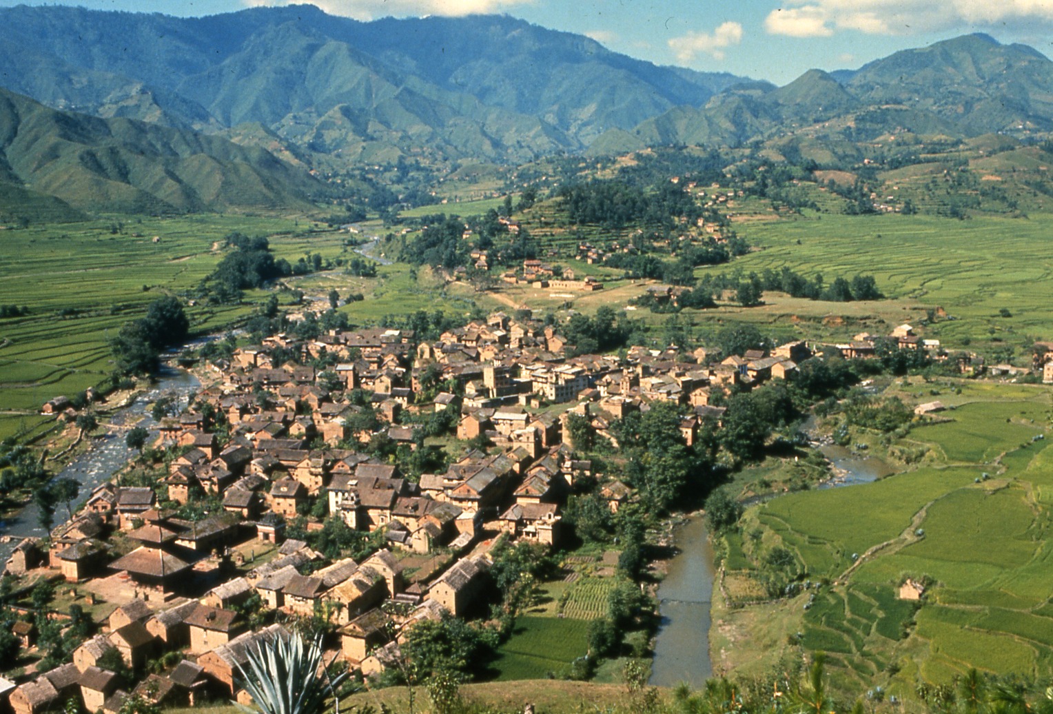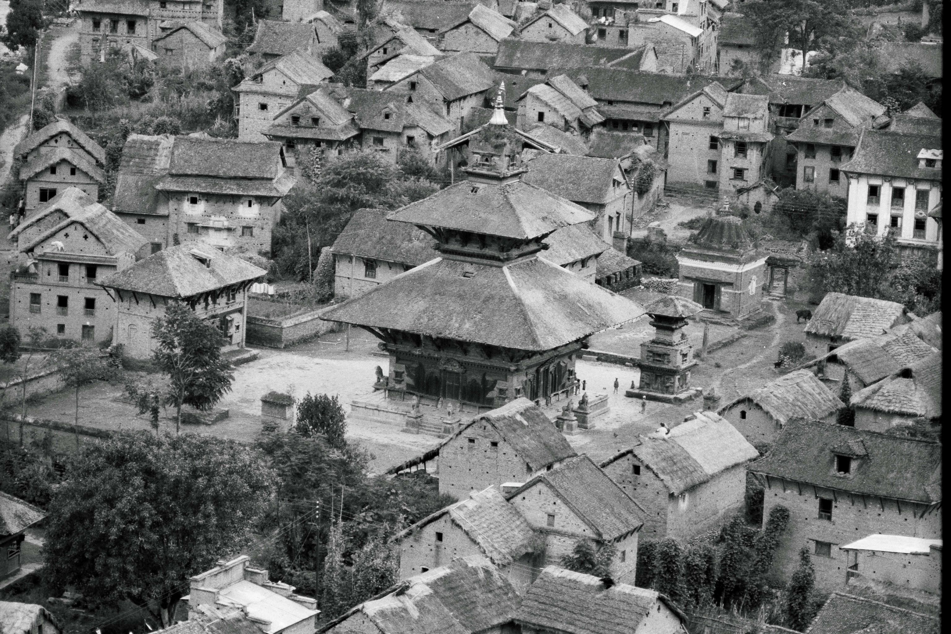Panauti. While the town's roofline has changed, the surrounding hills have more forest. Photos by Gerard Toffin, 1976 (left) and Prasant Shrestha, 2011 (right).