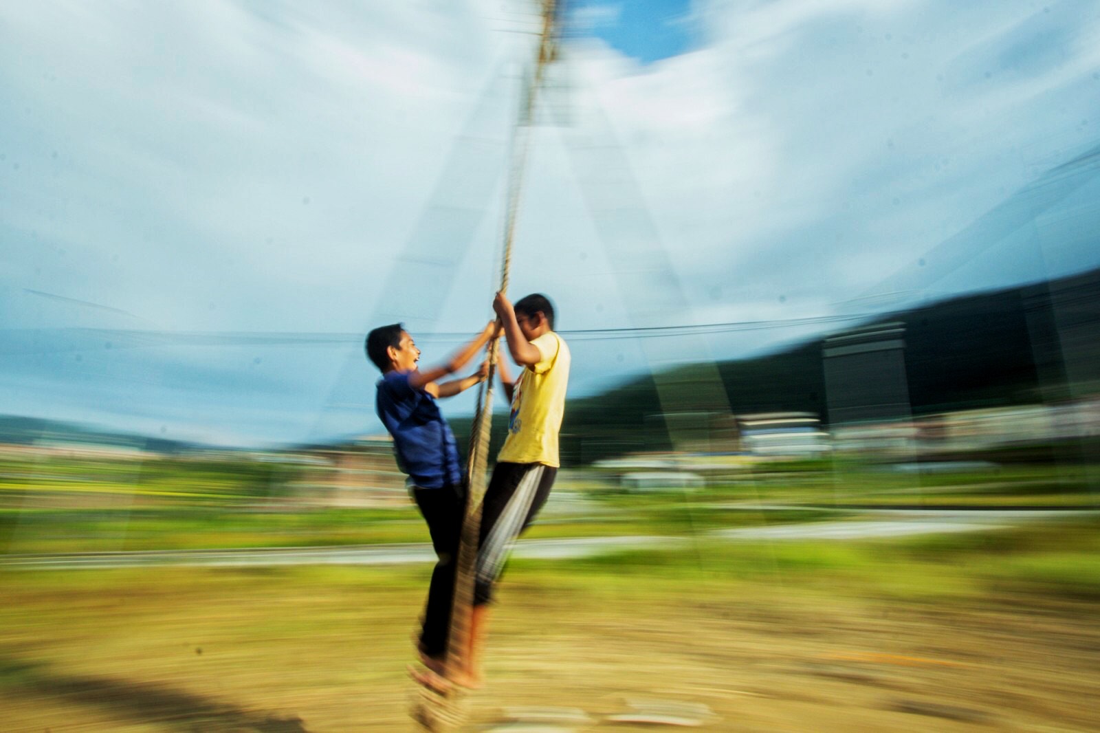 Dasain has been marked for millennia as a symbol of good vs evil, but probably originated as a harvest festival, and evolved into family get togethers. It is also traditionally accompanied by playing on bamboo swings and flying kites -- although this Dasain was too wet for kite fights.
