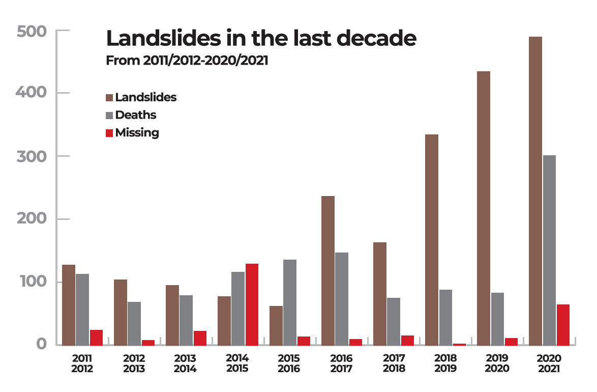Last year was the worst monsoon season in the past two decades in terms of casualties: there were 500 major landslides, nearly 300 killed and 70 missing. Most of the landslides were, again, in Sindhupalchok and were blamed on poor and unregulated road construction that disturbed the slopes.
