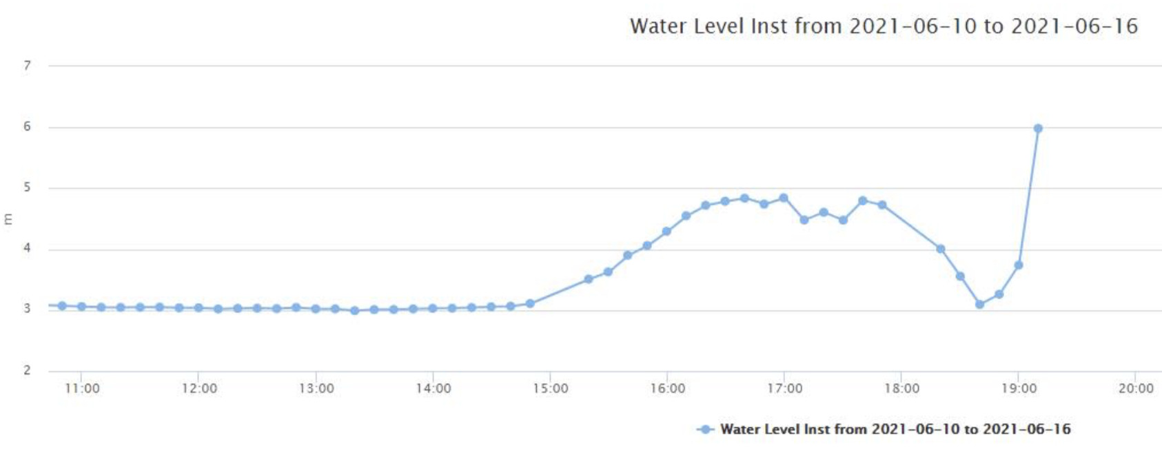 The torrent of liquid mud on both rivers arrived simultaneously at their confluence in Melamchi Bazar. Geographer Narendra Khanal has traced the Indrawati River blockage to a point 20km upstream. The Department of Hydrology and Meteorology monitoring station shows the Indrawati flowing at 4.7m at 4OM on 15 June, decreasing to 3m, and then shooting up to 6m at 6:45PM.