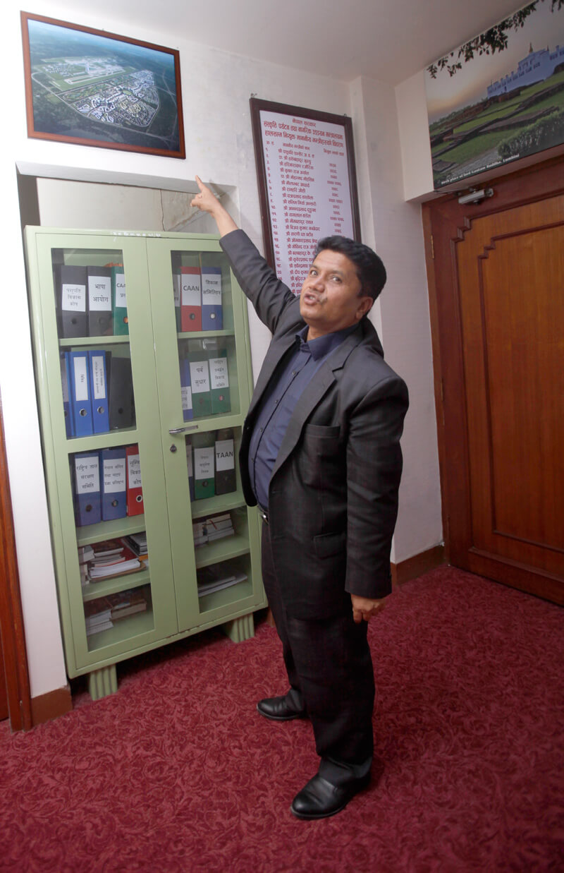 Tourism and Aviation Minister Rabindra Adhikari (pictured, right) has been the prime mover of the project, and has said only 250,000 trees will be cut in the $1 billion first phase, which will use up only 1,800 hectares of the forest.