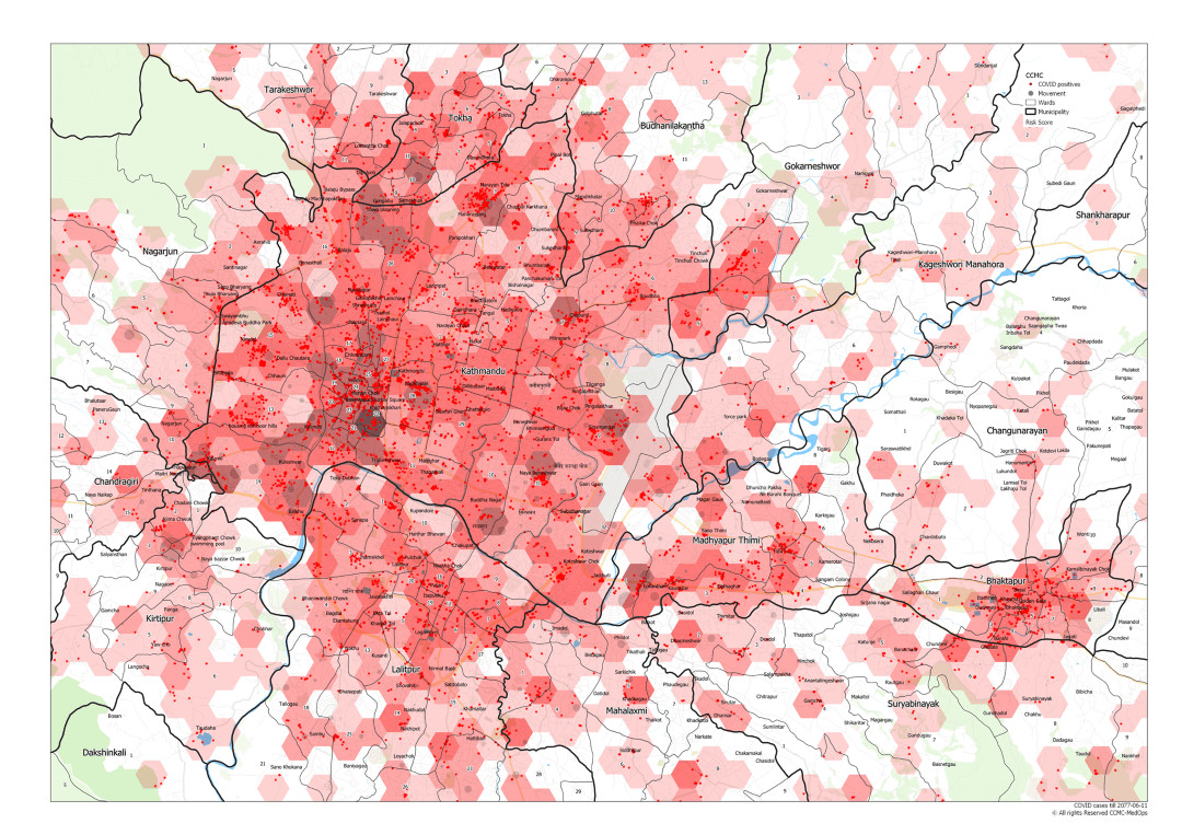 Maps released by the CCMC also show a higher number of infections among residents of Kalanki, Koteswor, Pulchok, Sinamangal, Chabahil, Narayan Tole, Naya Bazar and Bansatpur Dabar Square. The maps were prepared from data a week ago, and experts say the red areas would be even more extensive if the latest data was used.