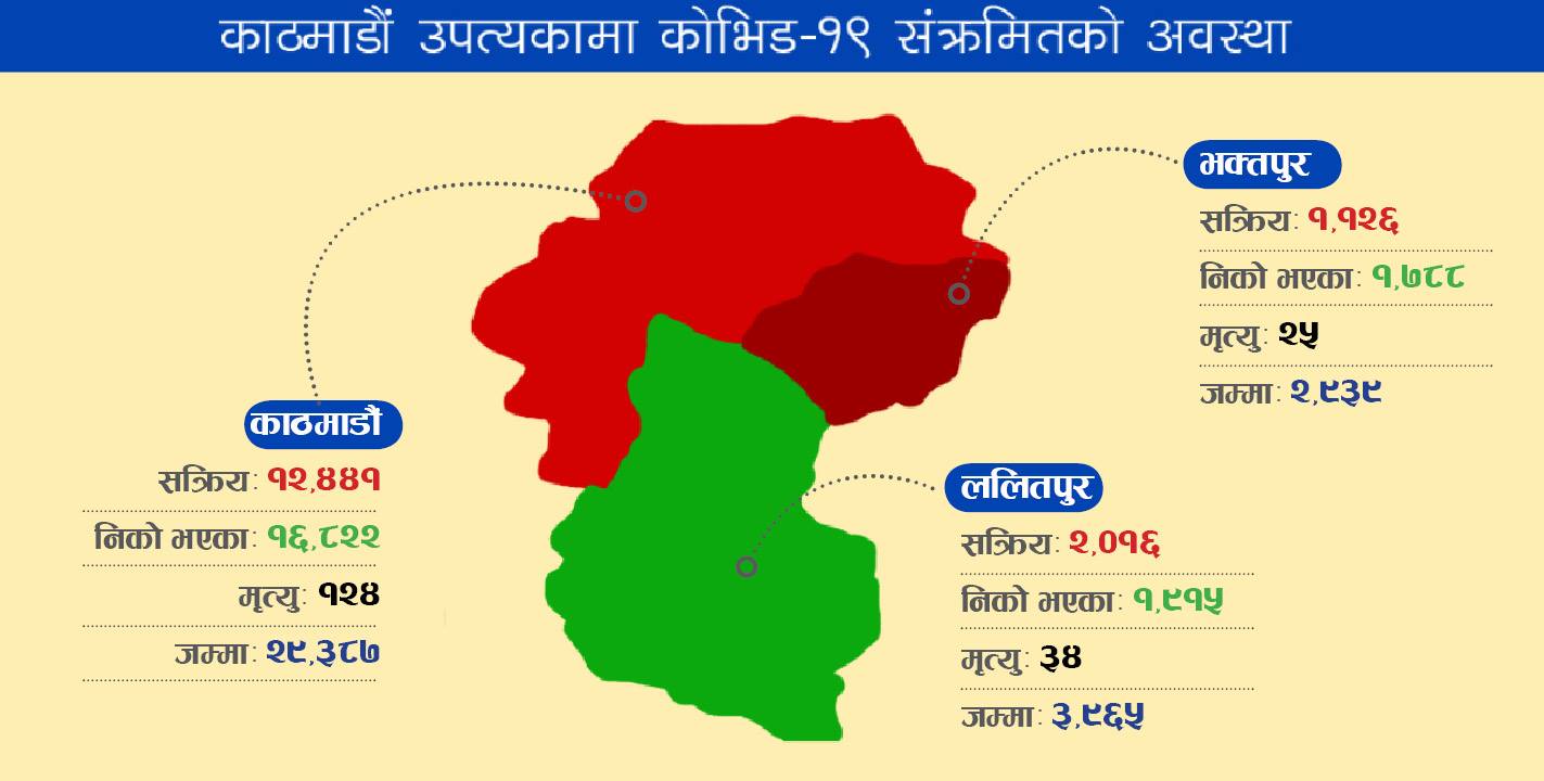Over 60% of the 27,053 active cases across the country are now in Kathmandu Valley, where one third of total deaths have occurred despite all the resources and facilities at its disposal.