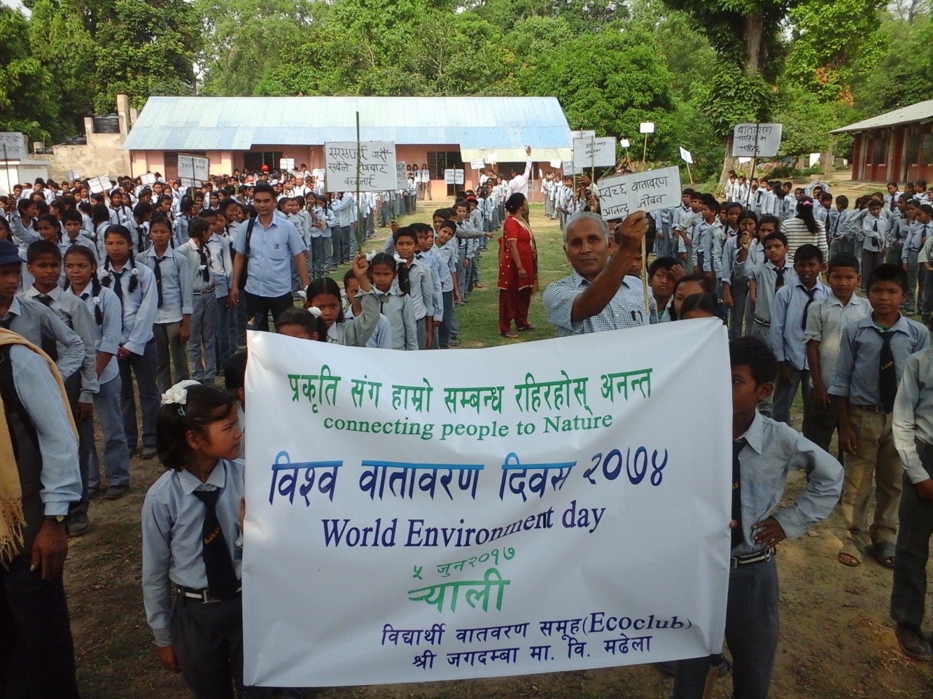 In Nepal, Environment Education is part of the larger science subject in the curriculum, however, due to easy access to nature throughout the country, many schools have incorporated elements of the ‘Green School’ concept. The Ministry of Education (MoE) supported by WWF Nepal, launched a Green School Guideline in 2018, with the objective of helping schools create an enabling environment for children and with a vision to transform spaces in schools into ‘Living Libraries’.