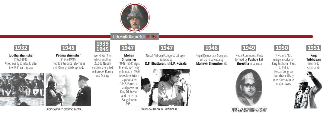 As the pressure from within Nepal and outside grew, half-hearted reforms by successive Rana prime ministers Bhim, Juddha, Padma and finally Mohan were too little too late to turn the tide of history. The Ranas had hoped that Gurkha recruitment would work again to cushion them against Indian pressure, but times had changed. India’s independence had already put the dynasty on the wrong side of its tryst with destiny.