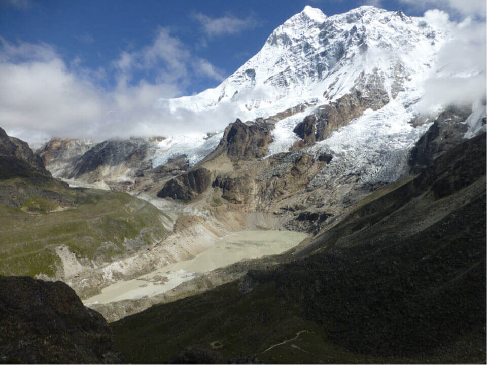Mt Makalu (8,485m) towers over the sacred Seto Pokhari glacial lake.