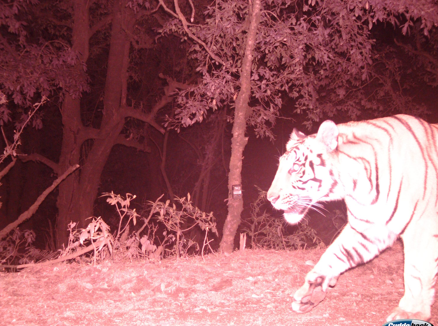 Among other animals that had taken selfies through the motion detector cameras, they found one of a tiger.