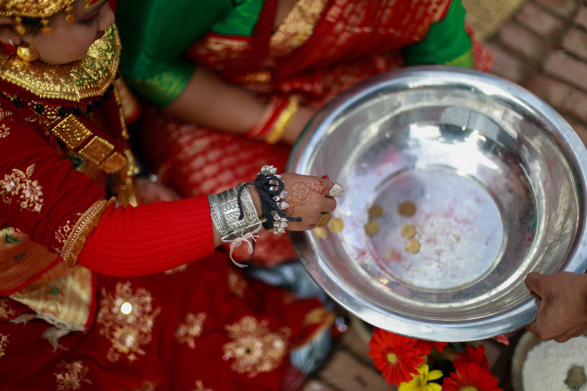 Before girls from the Newa community reach their puberty they are ceremonially 'married' to a holy fruit which is considered to be a symbol of Lord Vishnu.