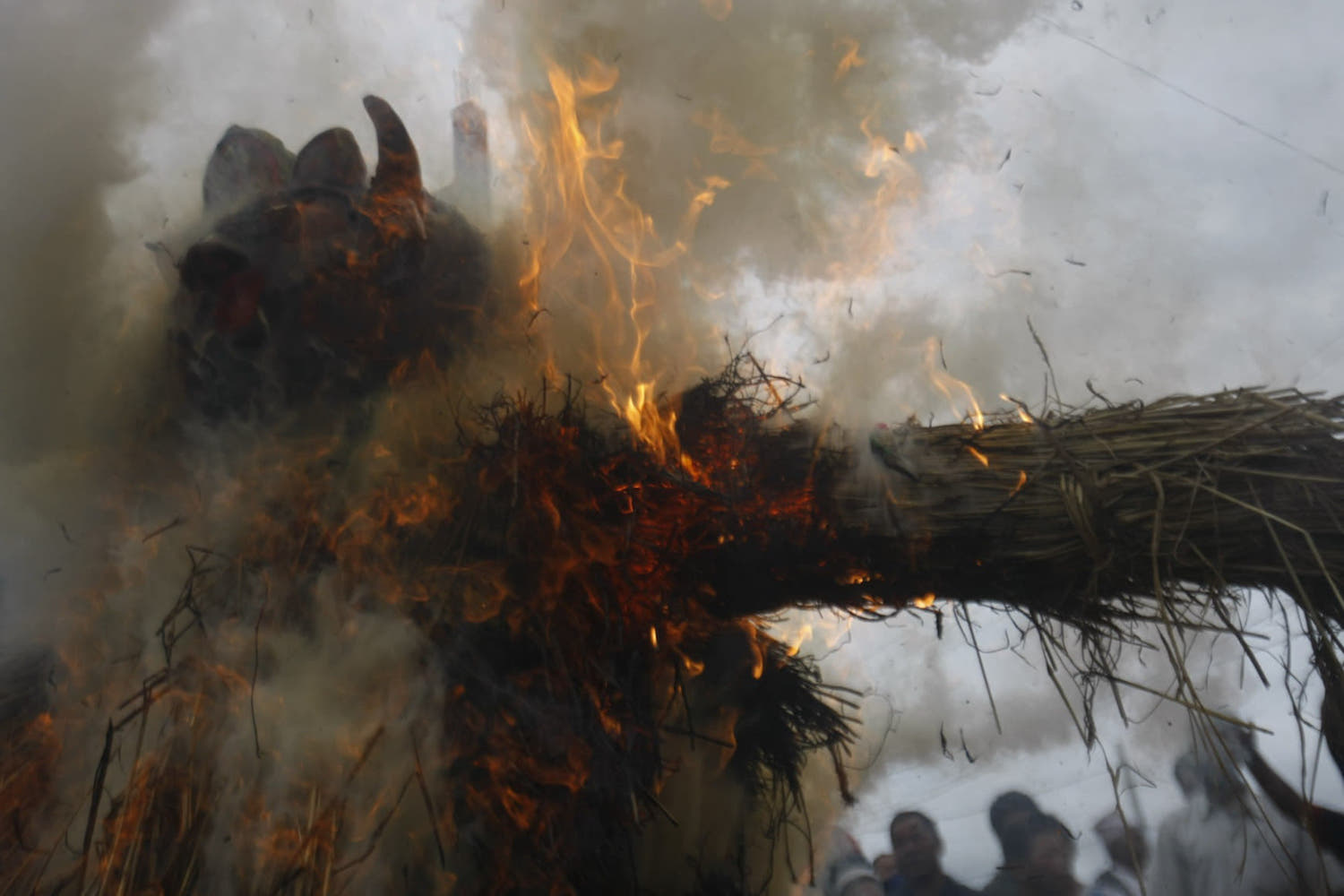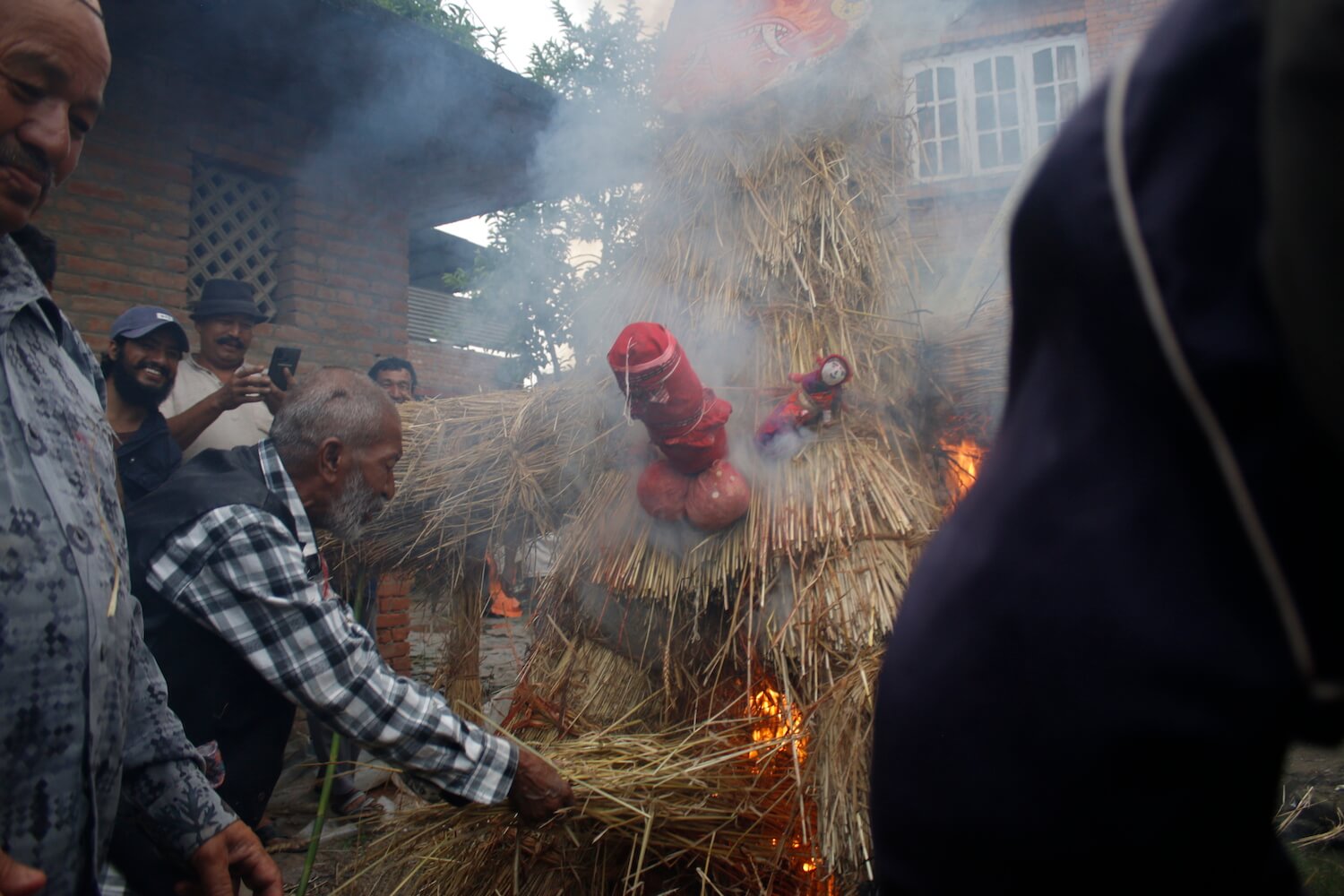 Kathmandu Valley celebrated the Gathemuga festival on Sunday by setting fire to effigies of demons, burning mustard to ward off evil spirits and driving three-pronged iron nails into the thresholds of their homes to keep out bad ghosts.