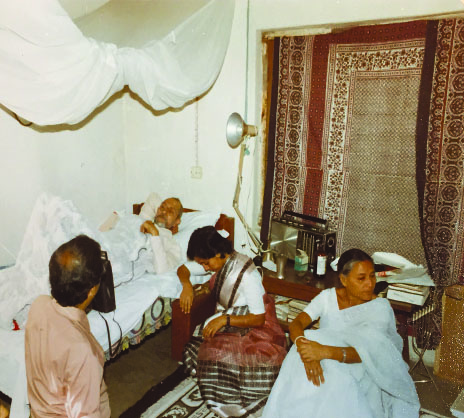 Lying on his bed, surrounded by his niece, Sailaja, and his daughter-in-law, Nona, BP looked tired. Naresh Koirala was taking photographs and remembers thinking that BP must have been weary with the thoughts of the impending travel.