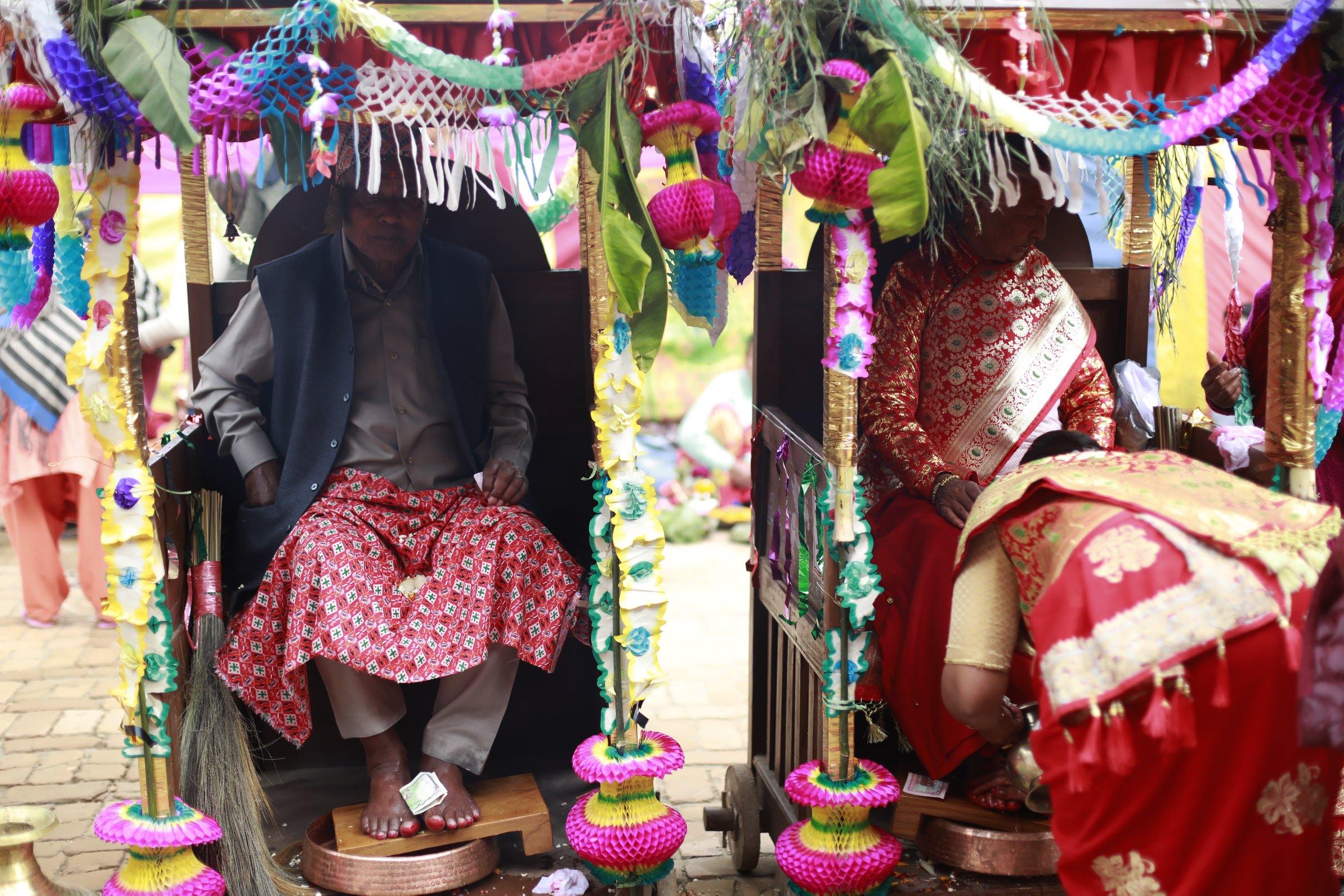 As people live longer, the processions in which elderly citizens are paraded around town have become more and more common. Photographs from a Jankothis week of Bishnu Bhakta Deupala and Jas Maya Deupala, who are celebrating 77 years, 7 months and 7 days.