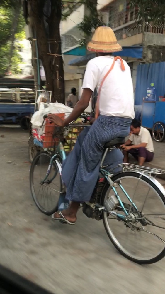 I clutch the centerfold of my lyongi now and then, in an attempt to make sure it doesn’t get tucked between my legs causing me to trip. I marvel at the grace with which men ride past me on their bicycles, dressed exactly as I am.