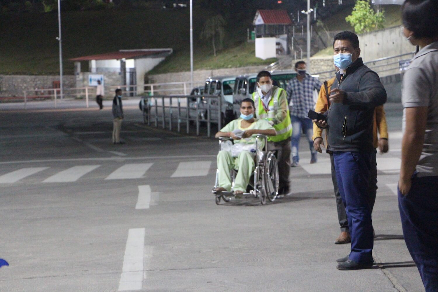 The evening of 23 April, Suresh was being pushed in a wheel-chair out of the arrival area at Kathmandu airport and put into an ambulance with the support of the medics and his father.