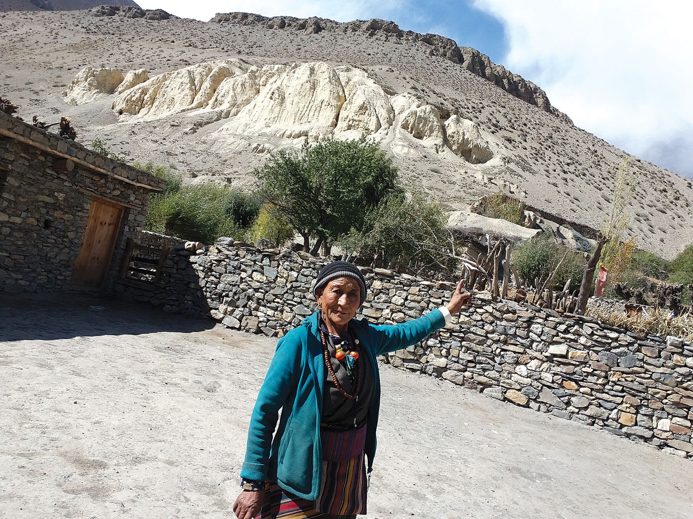 “It had been raining heavily, and all of a sudden there was this thunderous noise as rocks the size of houses were washed down in a sea of mud,” recalls Bhakti Hirachan, 77. The flood damaged 25 houses in Marpha and the scar of the flood can still be seen from the village.