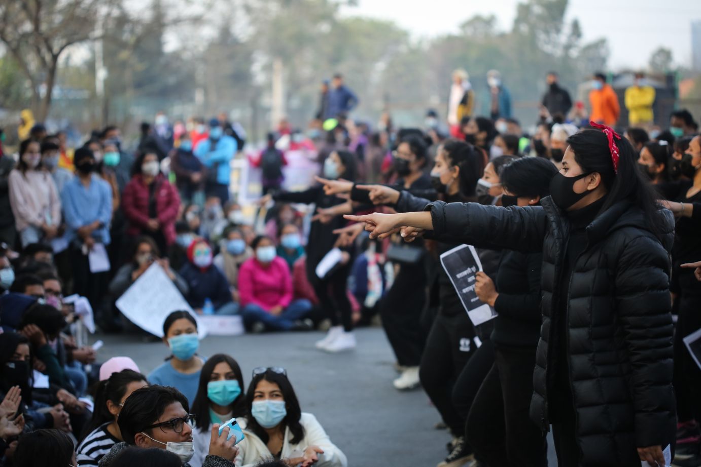 “It is always women and the gender minority that the government has failed,” said writer Anbika Giri, who was at the protest in Basantapur. “We worked so hard to get a constitution, and so many people died in this country. The constitution is in crisis now. It wasn’t like things were great before KP Oli dissolved the parliament, either. But, I’m here to protest because the unfair laws against women need to be rewritten and the parliament has to be reinstated.”