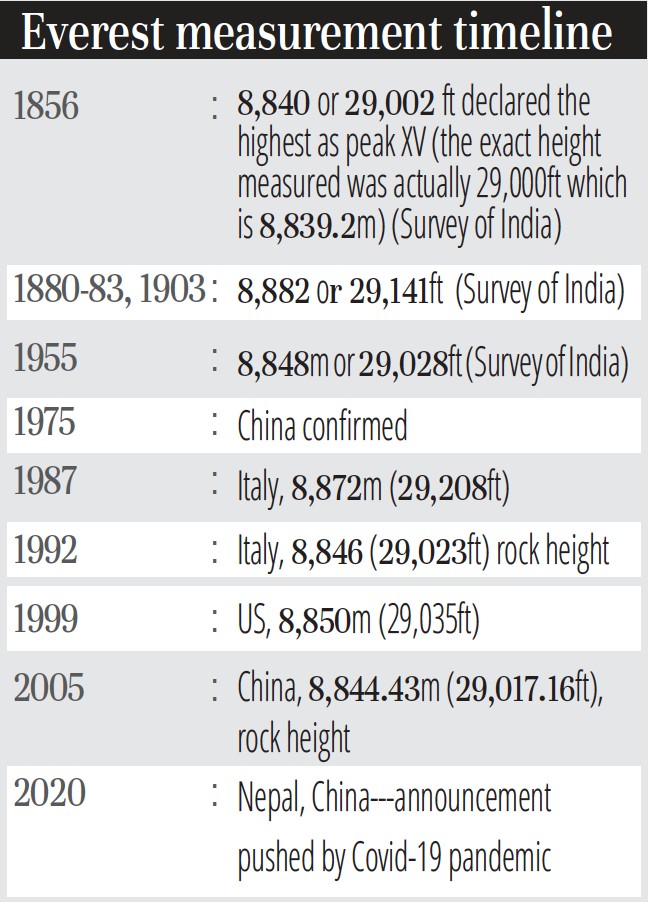 Nepal’s surveyors have completed their calculations, and say that almost as challenging now is to keep that number a secret until the Chinese complete their calculations, and a joint announcement is made. That date has been pushed back by the pandemic.