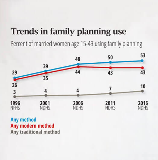 Unmarried youth, especially adolescents, had a higher unmet need and were more vulnerable to stigma associated with family planning. The report argues that the term ‘family planning’ only applies to married women and their plan to have children, whereas there are many contraceptive users who have no intention of having children, or use contraceptives to prevent sexually-transmitted diseases (STDs).