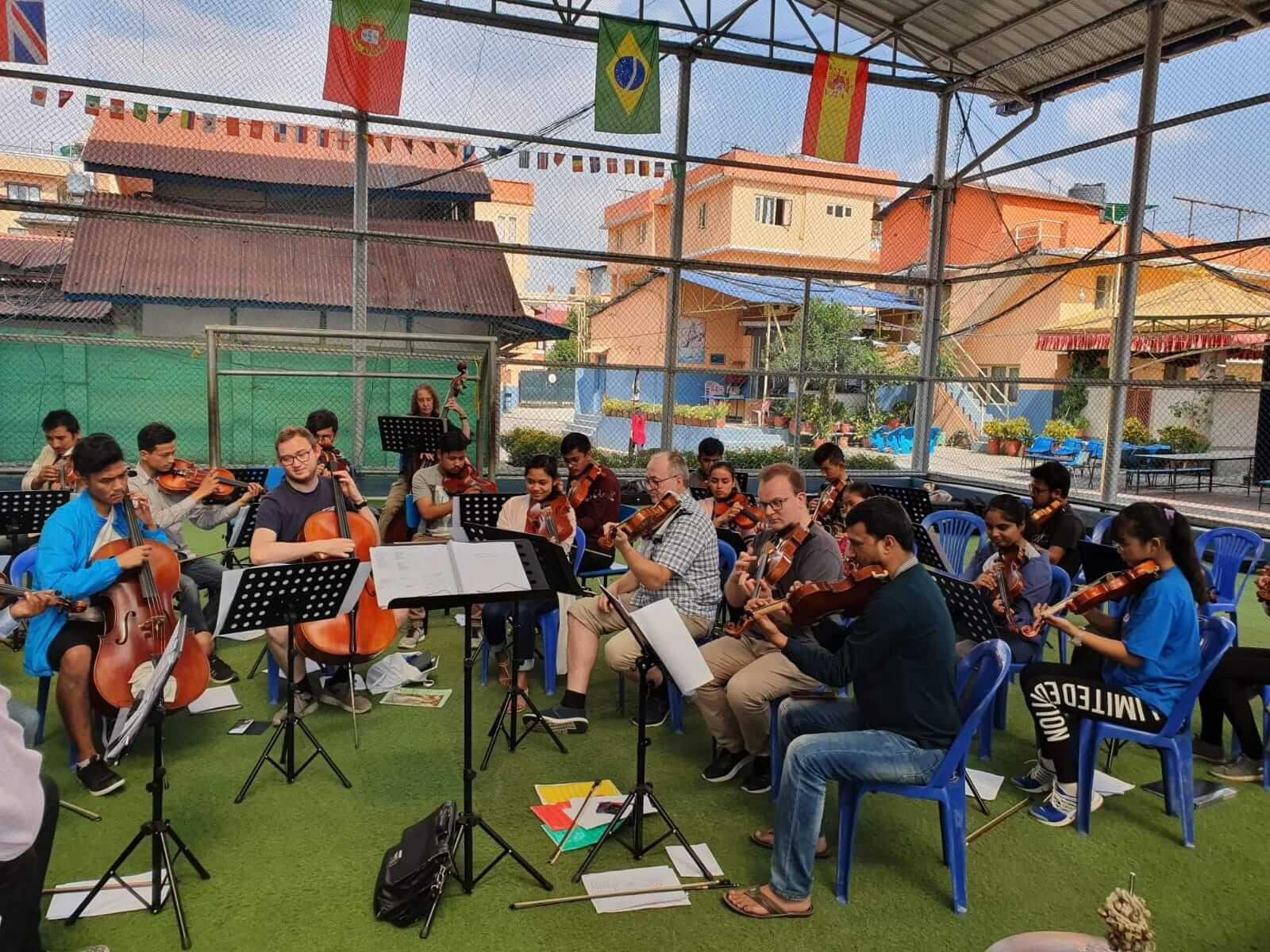 The Annapurna Chamber Orchestra met the Norwegian musicians from KvartalKvartetten through the World Federation of Amateur Orchestra. The project trains Nepali students for a week and organises performances in different venues of Kathmandu.