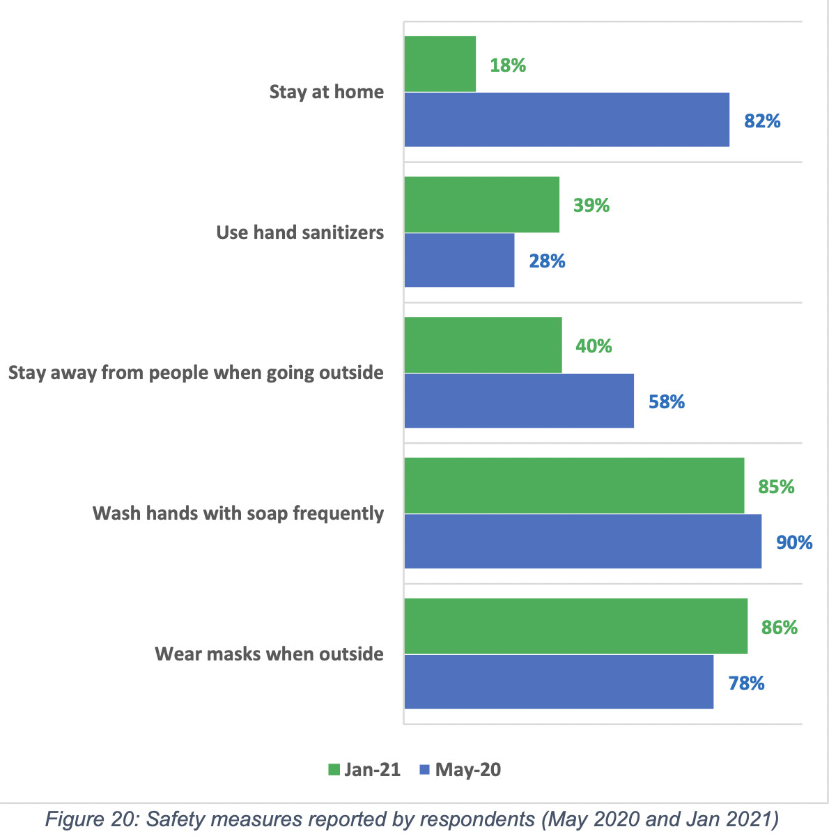 Another positive trend was a higher level of awareness about Covid-19 transmission and precautions. Most families appeared to be taking the necessary precautions with 84% reporting that they wore masks during the holiday season, and 71% of those surveyed had already been vaccinated as of November 2021.