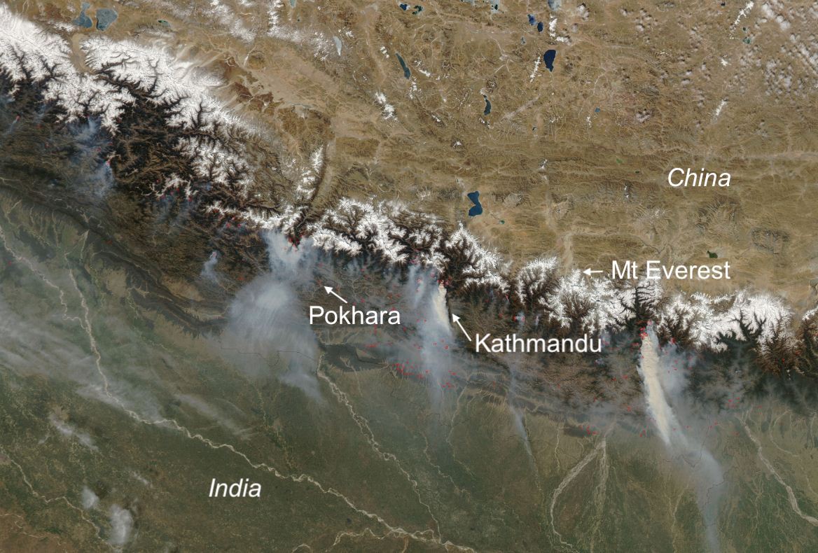 However, there was a sharp deterioration in air quality mid April this year in Kathmandu Valley despite vehicles being off the roads. This has been linked directly to several wildfires burning simultaneously in the districts around Kathmandu which caused an increase in outdoor air borne particles.