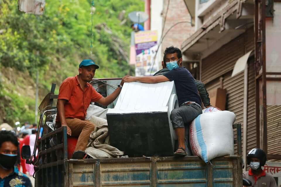 We live in lower Melamchi near the bridge. I was working in the fields when I got a call from my brother-in-law saying that the river was blocked upstream and to move to higher ground. We ran towards the road that is at a higher level than our house. After a while we saw that the level of water in the river had decreased, so we went home to cook and eat dinner. We were still cooking when we got another warning to leave.