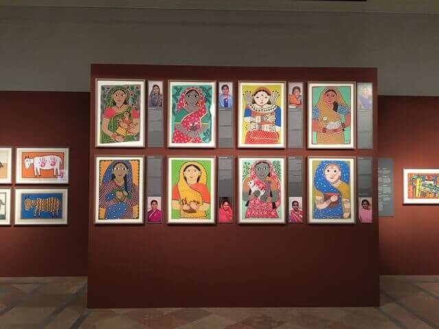Schicklgruber and the late Dina Bangdel came up with the idea for a major exhibition three years ago. Bangdel died suddenly in 2017, but the project went ahead in her memory with co-curator Swosti Rajbhandari Kayastha of the Nepal Art Council. In the mezzanine of the Weltmuseum is another presentation of Maithil art by female painters, put together by Claire Burkert.