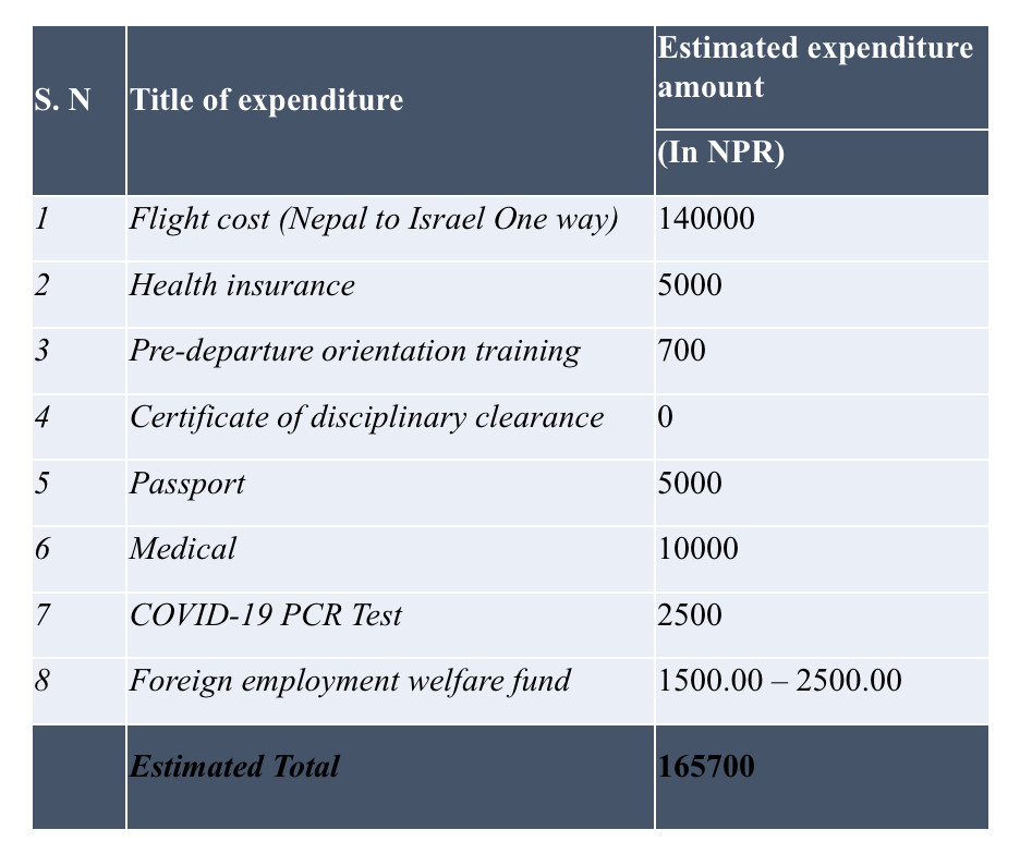Government authorities have defended the fee. Nepal’s ambassador to Israel, Anjana Shakya says the pre-departure costs will be much less than Rs167,000 because the air fare is not going to be as much.
