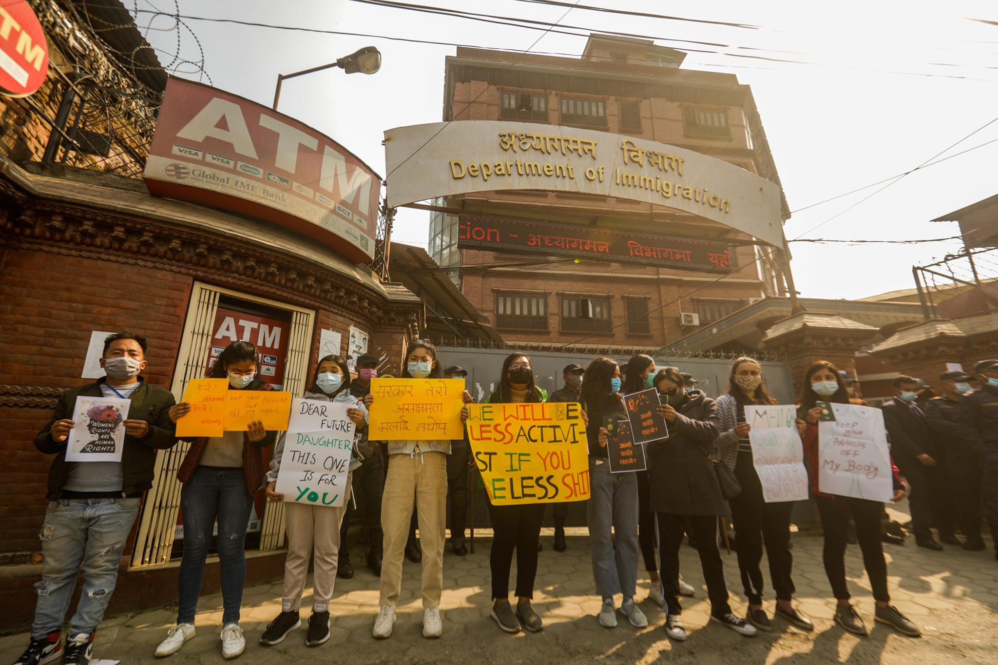 A group of women staged a peaceful protest outside the Department of Immigration in Kalika Marg, on Thursday. The demonstrators waved their passports, and chanted slogans against 'the second-class treatment that' women have been subjected to, time and again.