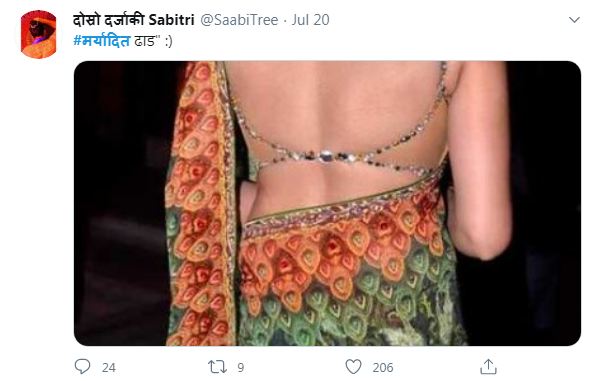 Journalist Sewa Bhattarai, devoted an entire Tweet thread to ‘dignified dressing’. She said: ‘A generation before, Bhramin women had to cook without wearing a blouse. Some of us have met these grandmothers, and probably, some people might still follow this custom … Wearing a cholo was considered immoral in those days, the daughter-in-law could be beaten. Times have changed. We are immersed in the blouse culture introduced by the British, and we can no longer see the back.”