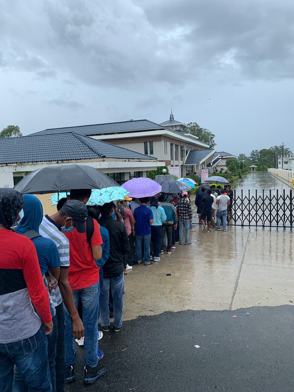 They have braved the rain and withstood heat, as seen in these pictures of migrants at the National Ayurveda Research and Training Centre in Kirtipur on Sunday.