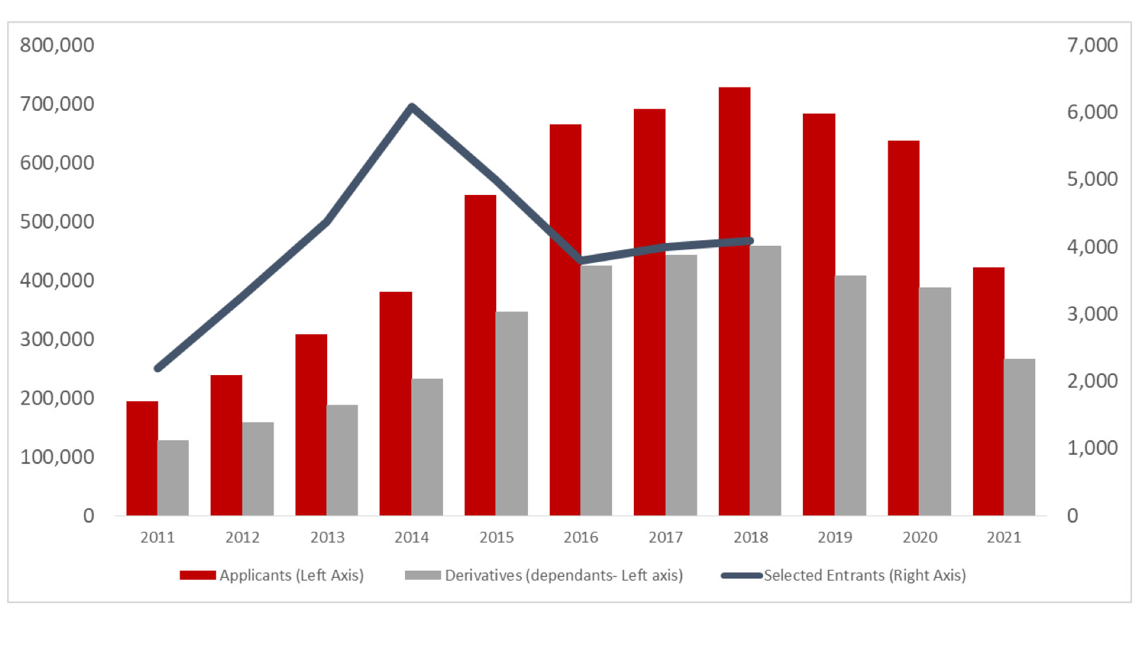 Every year, some 55,000 winners from over 14 million applicants are selected for permanent residency from underrepresented countries, including Nepal. The number of applicants from Nepal exceeds 600,000 annually. In 2018, 4,097 Nepalis were awarded permanent residency in the US through this program (see figure).