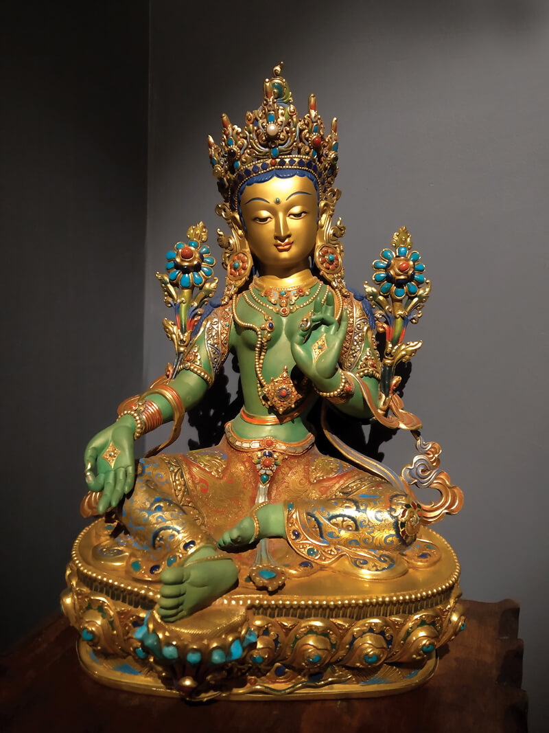 For centuries Kathmandu has been famous for such ritual artwork, prized for aesthetic beauty and attention to detail. Everything about the deities, from their complexion to their poses, is replete with many layers of meanings: for example the Green Tara’s green complexion symbolises compassion. While these paintings and statues are valued by Kathmandu’s Newar community for worships, a layperson also finds lot to admire in these works.