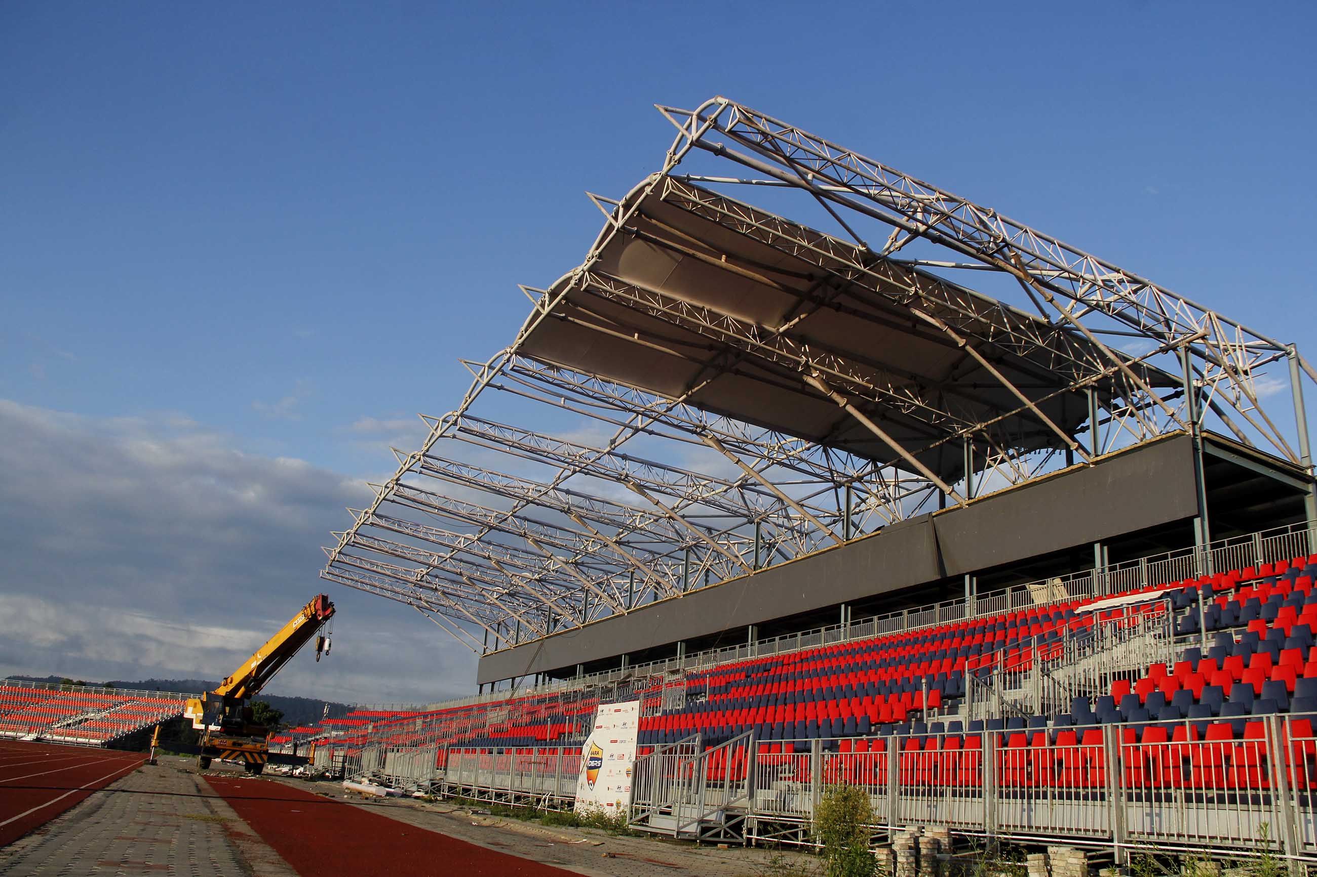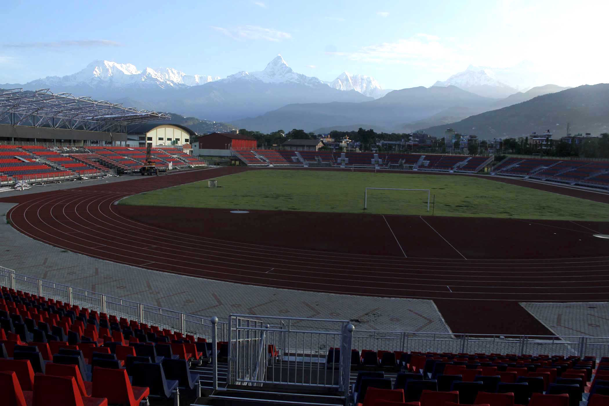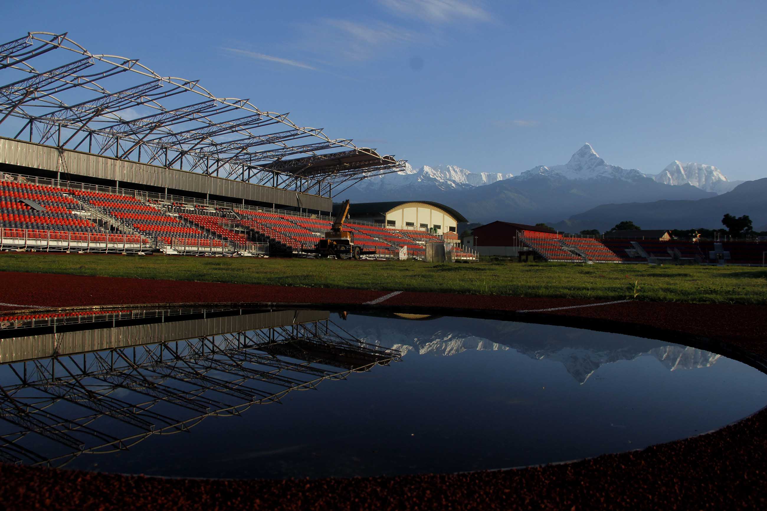 On Sunday morning the view was best from Pokhara's new airport and the nearby stadium, which is being refurbished with a new roof and seats.