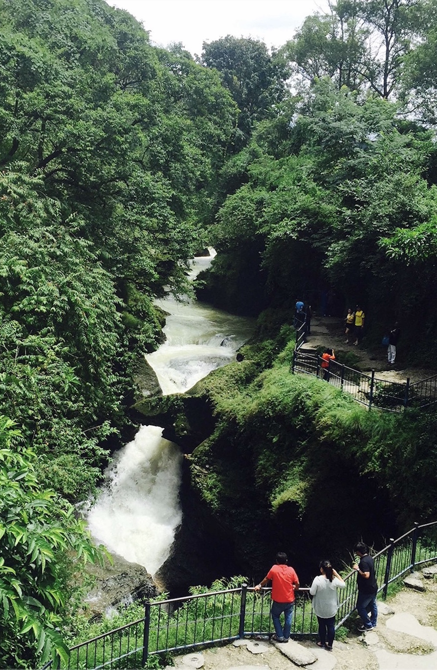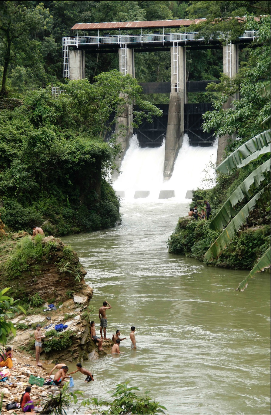 By afternoon, the heat in Pokhara got oppressive, and people thronged to swim below the Phewa Dam that has just been repaired. The dam is  upstream from the popular Davis Falls, which had a few people on Sunday because of the lockdown (above left).