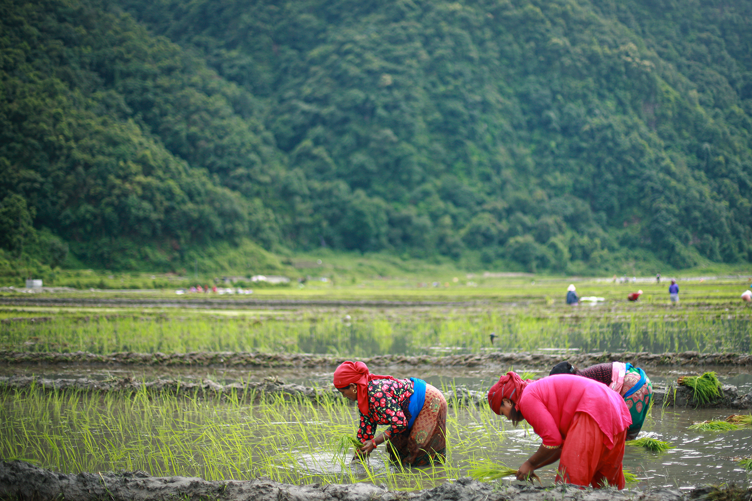 Back in Pokhara, photo journalist Amit Machamasi captures farmers as they transplant rice seedlings this week.