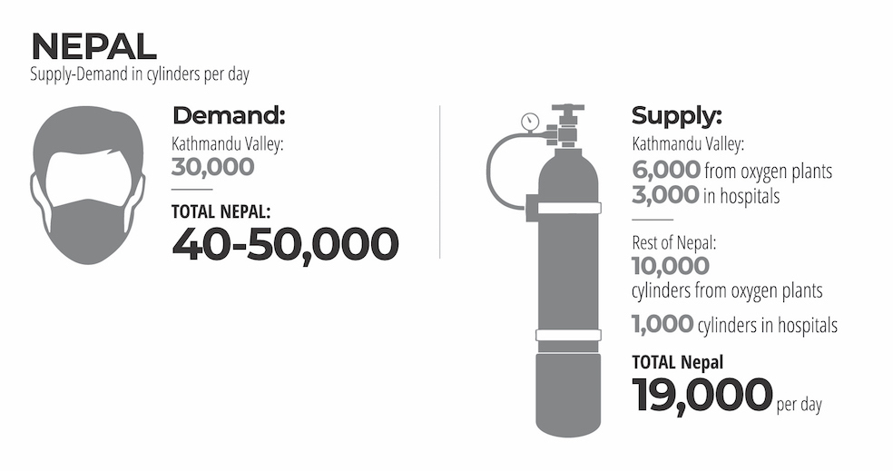Most of the 29 oxygen factories in Nepal were working at only half capacity pre-pandemic because of low demand. In fact, three of them had closed down. As the second wave hit, the plants went into full-scale production, but a shortage of cylinders meant that the excess production could not be sent to hospitals.