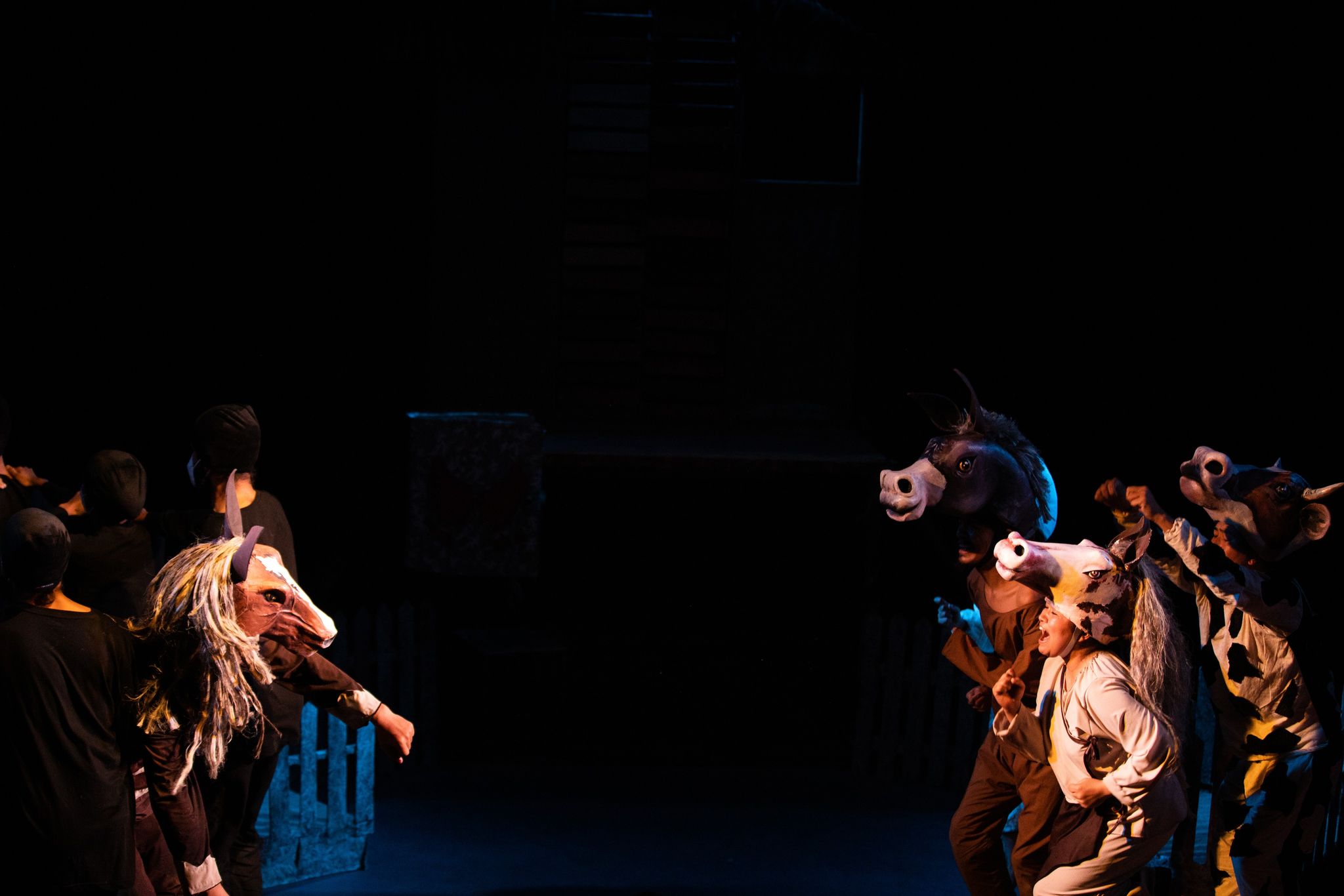 The Great Animal Revolt begins at Teku’s Kausi Theater with a pig’s rousing speech calling for revolution against a human oppressor.
