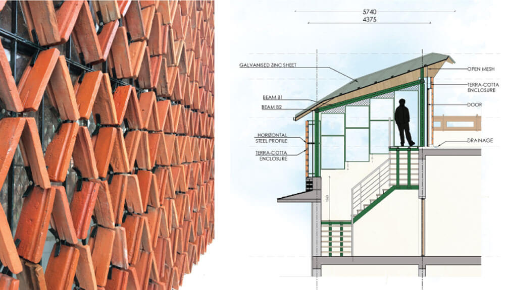 Terracotta tiles are hard to beat in terms of sustainability and climate responsiveness, compared to concrete slabs or steel sheets. Concrete is all the rage today because of its supposed strength and water-resistance, but it makes buildings costly to heat or cool.