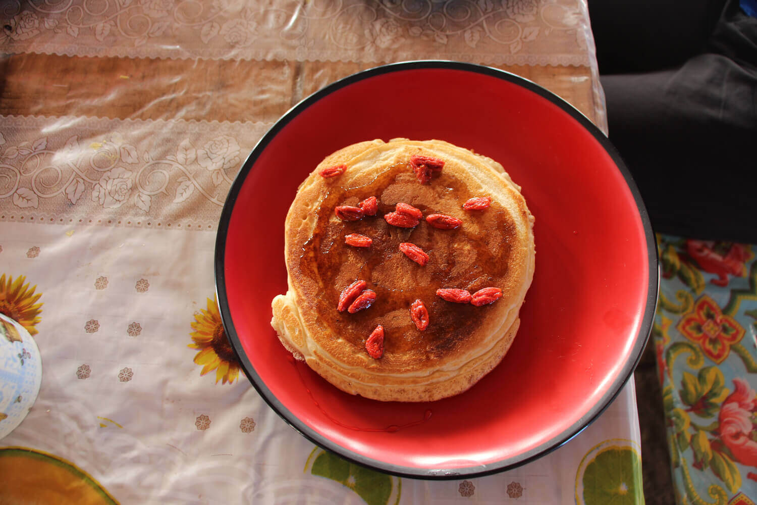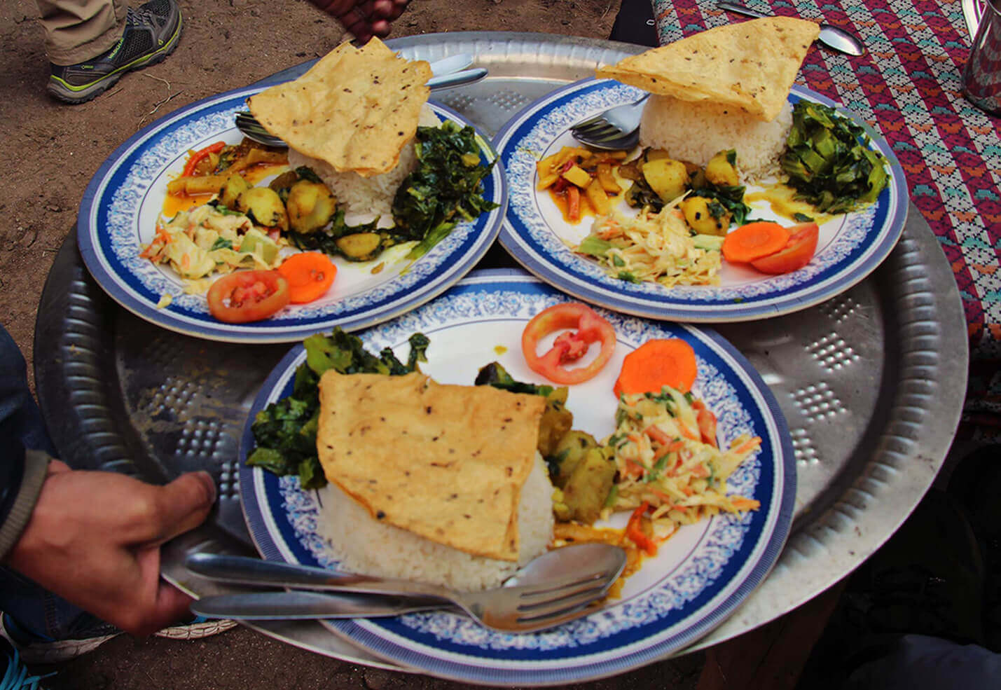 Besides this magic concoction, every meal is a surprise and trekkers only know what they will be eating when it is served. Breakfast might be cereal and porridge sprinkled with chia or flax seeds, nuts and honey, and roti or chapati with organic peanut butter. And while other trekkers have the option of mostly hard-boiled eggs and a cup of watered down tea, clients of Responsible Adventures get eggs to order and hot cups of freshly brewed coffee.