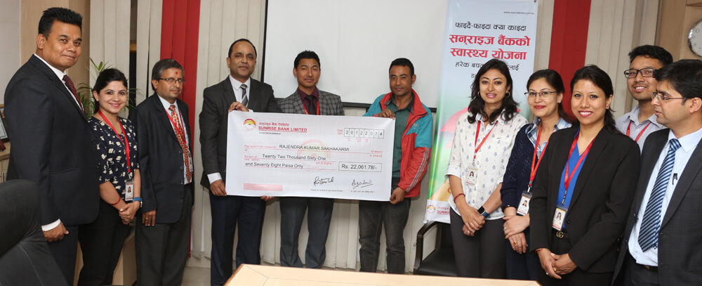 Under the bank’s health insurance facility, Sunrise Bank has been providing savings account with a guarantee to compensate for the expenses, facilitating up to 25% of weighted average deposit of the last 365 days or the bill amount—whichever is lower—with a maximum limitation of Rs100,000.