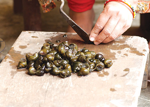 Full of proteins, snails are said to heal wounds and broken bones faster. However, ghonghi is not well known outside the Tharu community and many Nepalis are not even aware that snails are edible.