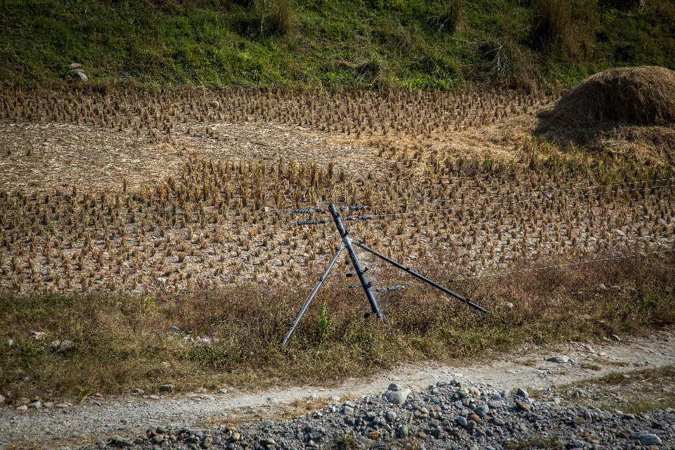 There is an 18-km long electric fence along the Mechi River, between the forested tracts in India where the elephants come from and the crop fields in Bahundangi. Luitel was involved in building this fence, designed to keep the elephants out.